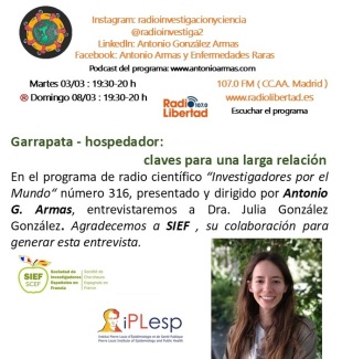 En el programa de radio científico “Investigadores por el Mundo" , número 317 presentado y dirigido por Antonio G. Armas, que se emitió en Radio Libertad , el martes 03/03 entre las 19:30-20:00 h, se ha entrevistado a:
