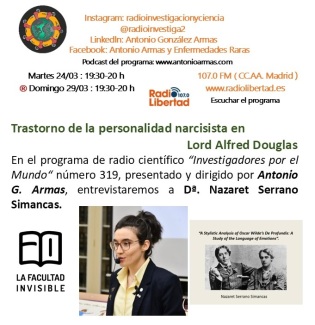 En el programa de radio científico “Investigadores por el Mundo" , número 319 presentado y dirigido por Antonio G. Armas, que se emitió en Radio Libertad , el martes 17/03 entre las 19:30-20:00 h, se ha entrevistado a_